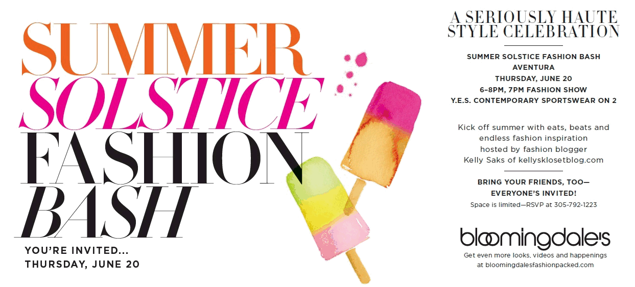 I'm pulling double duty as stylist & host as Bloomingdale's Aventura celebrates summer this Thursday night! From bikinis to lace frocks, don't miss my summer style staples in the fashion show at 7 PM.