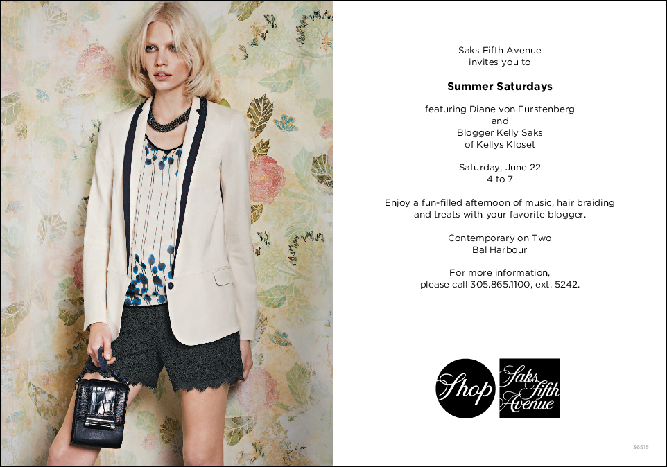 When your done roasting at the beach on Saturday, meet me at Saks Bal Harbor and cool down with refreshments, live music, and a braid bar. I'll show you my tan if you show me yours.